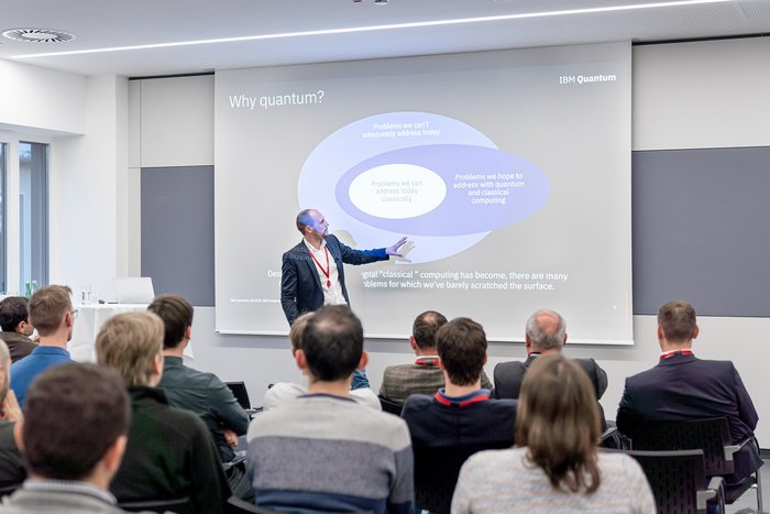 Zum Schluss gab es mit Florian Preis, Quantum Ambassador & Data Scientist bei IBM, noch einen Ausblick in die Zukunft: Als einer der weltweit wenigen Experten, die öffentlich über Quantum Computing referieren dürfen, vermittelte er einen Eindruck, wie diese Technologie in rund zehn Jahren für industrierelevante Prozesse praktisch nutzbar werden kann.